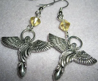 No niin, se olis taas korviksia. Metalli enkelit ja helmi on kristallia.