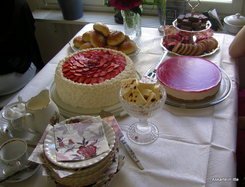 PoistaOnpa ihanat tarjoilut olleet!Mansikkakakkua alkoi tekemään mieli ja huomasin,että vanhimmalla pojallahan on maanantaina synttärit ja kotiin tulossa joten teenpä sitten kakun.