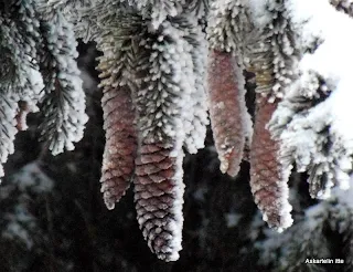 PoistaKauniita talvikuvia,ihanat isoja kuusenkäpyjä!