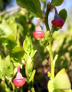..meilläkin mustikka jo kukki, olen pannut merkille, että olema saahneet eteläsuomen kiinni näissä kasveissa. Tuomikin kukki, vaikka juhannuksena normisti on kukkinut:)